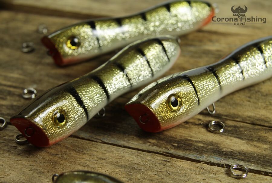 Our Plopper was designed for fishing in specific conditions: shallow water, underwater vegetation and obstacles are the perfect hiding place for large pike. This lure is perfect for such environment. Its action consists of characteristic splashes with distinct bubble, and jumps from side to side if the „walking the dog” technique is applied. Even with very aggresive retrieve, our plopper won’t sink deeper than few centimeters. This creates a very attractive picture, one that even the most difficult pike can’t resist.